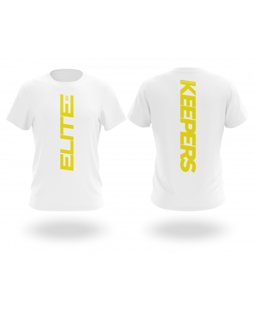 The white Elitekeepers Vertical Logo Tee combines minimalist style, comfort, and an iconic vertical design with the EK logo, available in various colors. An essential basic for goalkeepers on and off the field.