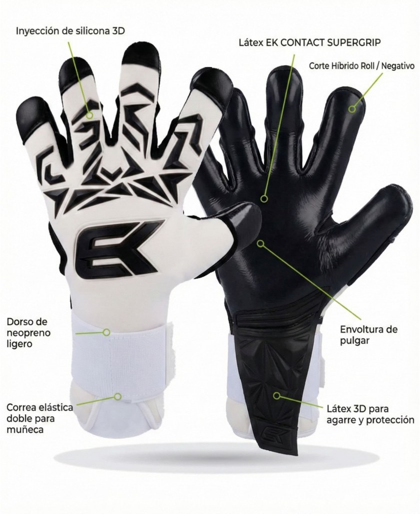 The palm features EK CONTACT SUPERGRIP contact latex in a 4 mm thickness—pro-grade latex engineered to deliver secure, consistent grip in high-demand situations.