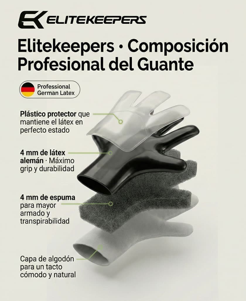 Responde con solidez en seco y en mojado, manteniendo un tacto directo para porteros técnicos y decididos.